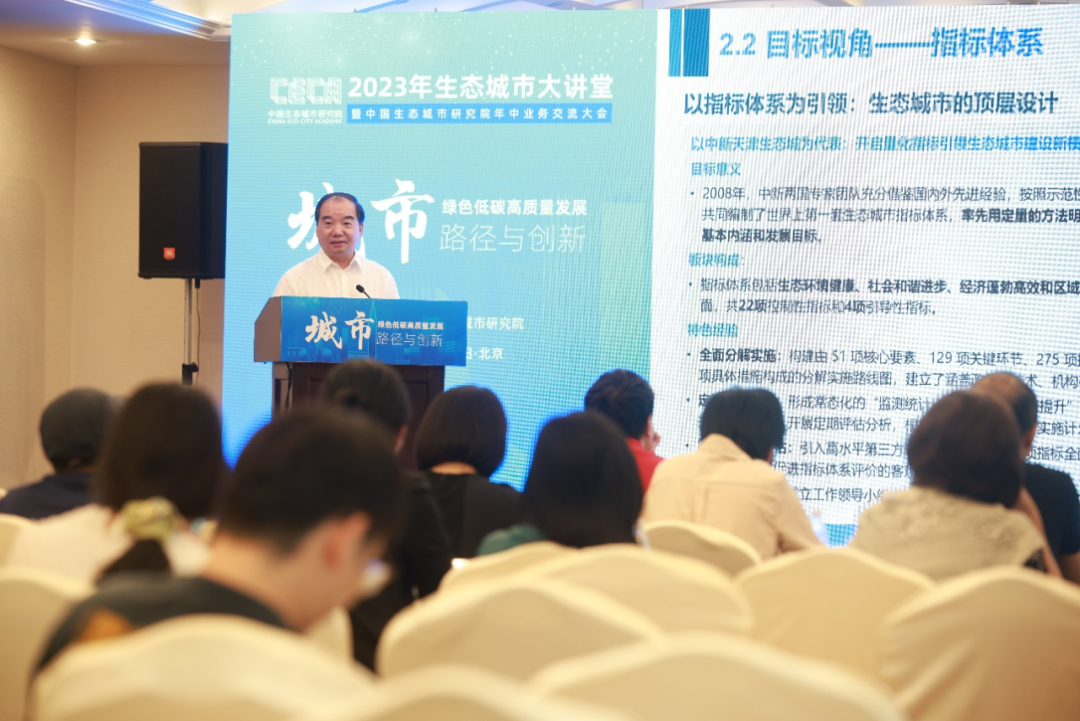 发布时间:2023-09-02 浏览次数:2672中国生态城市大讲堂以“城市绿色低碳高质量发展路径与创新”为主题,围绕绿色生态城市理论体系、人居环境的规划响应、城市空间发展优化研究、低碳生态城市规划方法与路径研究、城市有机更新、海绵城市等方向展开交流研讨。在此次论坛上,中国生态城市研究院常务副院长沈磊教授针对《迈向生态城市发展的新时期》这一议题,发表了系统性、前瞻性和实践性的精彩演说。